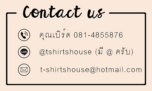 • เสื้อยืด : เสื้อทีม เสื้อคู่รัก เสื้อแฟนคลับ เสื้อโฆษณาสินค้า เสื้อรุ่น เสื้อครอบครัว หรือสั่งทำพิเศษเนื่องในโอกาสต่าง ๆ